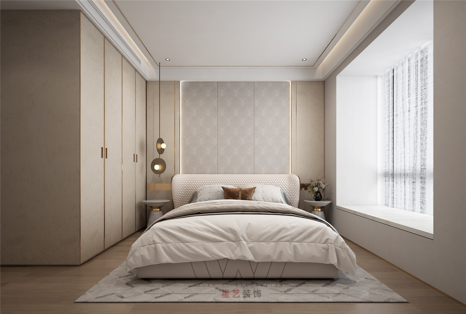 對輕奢臥室而言,情調和氛圍的營造是設計的重要組成部分