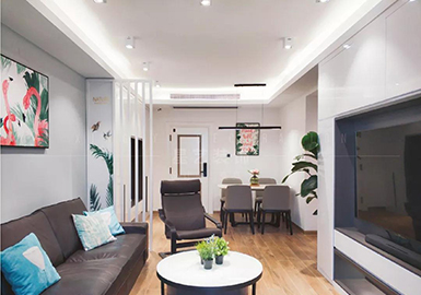 本次案例為港式輕奢風格,。越尊貴的居所,越需要多元的休閑區來滿足社交需求,所以設計師以“自然&藝術”為主題構思設計,最大限度地優化建筑平面拓展空間,讓室內空間尺度闊綽從容,形成豐富而遞進的空間場景。